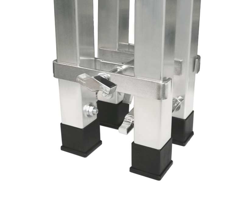 Strengthened 4-leg connector to join 4 platforms by their legs, increasing safety and adding extra stability. It is designed for GUIL platforms with 50 x 50 legs.