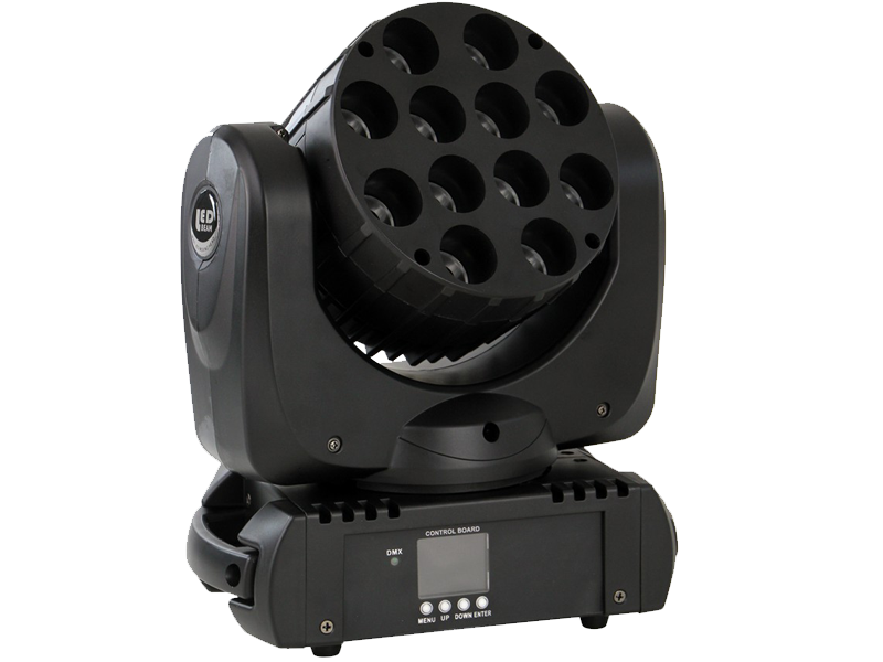 12x 10 Watt RGBW CREE LEDs. Very narrow beam angle for sharp, far-reaching beam (8.7 degrees). Very fast PAN / TILT movements. Only 150 watts power consumption