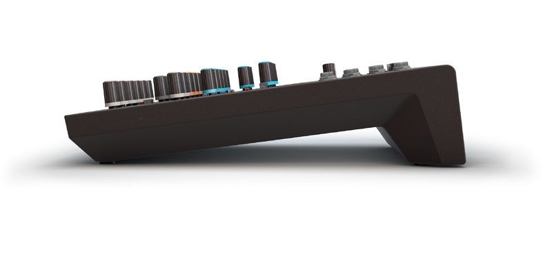Controls Mono Mic and Line Input Channels: 3-band EQ (High, Mid, Low), AUX Post, Channel Volume, Gain, pan