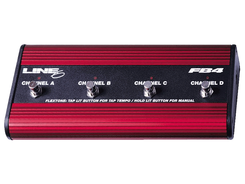 The Line 6 FB4 4 Button Footcontroller has 4-channel switching with tap tempo. No wall wart needed; it’s powered by your amp/POD. The Line 6 FB4 works with AX2, Flextone, Flextone II, POD, POD Pro, Bass POD, Bass POD Pro, Spider