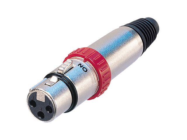 FX connector with noiseless ON-OFF switch short-circuiting contacts 2+3. For use with a microphone without switch.
