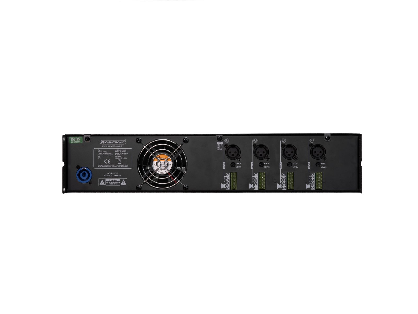 Class D multi-channel PA amplifier with SMPS, 4 x 500 W RMS (4 ohms), 4 x 250 W RMS (8 ohms)