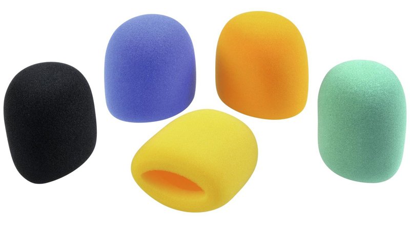 Set mikrofonskih spužvica, 5 boja Windscreen made of plastic foam Decreases noise interferences 5 different colors per set (black/green/orange/yellow/blue) Universal usage (40-50 mm)