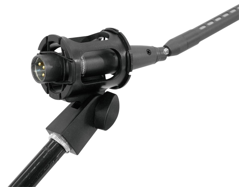 SLIM-01 elastični držač uskih mikrofona Elastic holder for microphones of slim construction with d = 18 – 25 mm With standard 16 mm inside thread (5/8″) Swivable