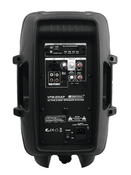 VFM-210AP 2-Way Speaker, active Active 2-way speaker system (10″) with 90 watts for PA and DJ applications with audio player and Bluetooth