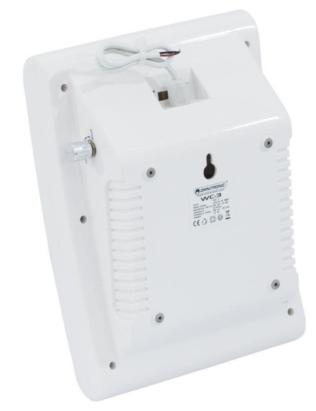 Omnitronic WC-3 PA zidni zvučnik 6″ full-range speaker, 100 V, 10 W RMS 100 V full-range speaker with dome tweeter Level control High-quality, scratch-resistant plastic housing (ABS) Perfect radiation angle through curved cabinet Connection via open wires For indoor amplifying systems
