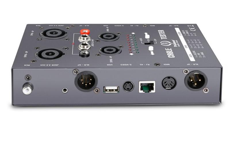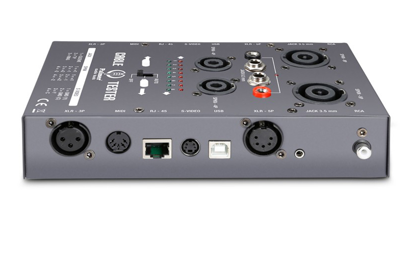 Pro AHMCTXL V2 – Multi-Wire Cable Tester – AHMCTXL V2 can test cables with Speakon 4-pin and 8-pin, XLR 3-pin and 5-pin, 3.5 mm and 6.35 mm TS and TRS, RCA, DIN/MIDI, USB, RJ-45 and S-Video connectors. It includes a pair of probes that enable troubleshooting cables with other types of connectors or the wiring in studios and installations.