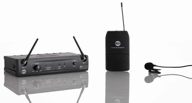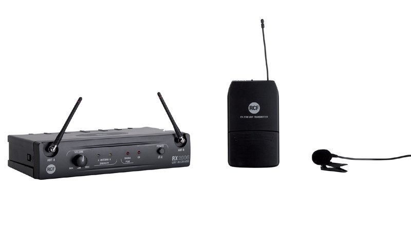 PX 2106 kit consists of: a RX 2006 receiver (with AC / DC adapter and a 1.5 m cable with 1/4” jack plugs) a PX 2100 body pack transmitter a LA 2004 ‘Lavalier’ (tie-clip) electret microphone Rack ears to mount a pair of RX 2006 receivers into an unit of a 19” rack cabinet.