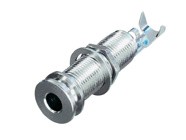 3 pole 1/4” jack for thick panels, special designed head for guitar strap, long-threaded bushing with washer and nut, full metal