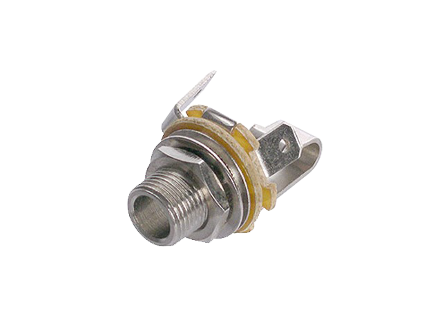 3 pole open 1/4” jack, 3 contacts, with washer and nut, panel thickness 3.5 mm, with 0.205″ faston tabs