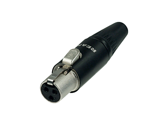 3 pole tiny xlr female cable connector, black metal shell, gold plated contacts