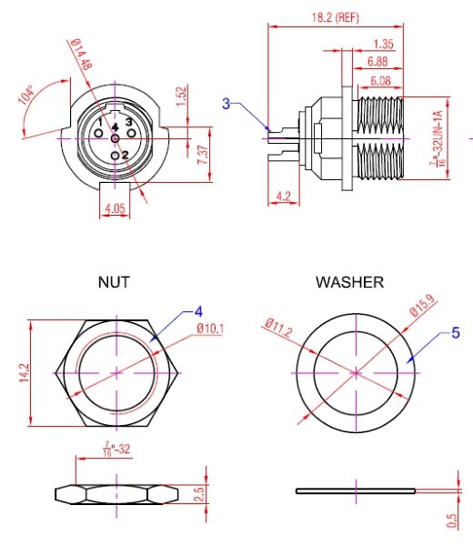 3 pole TINY xlr male chassis connector, rearmountable, nickel housing, gold plated contacts, max. panel thickness: 3 mm Rear mountable design Shielded system – high noise immunity and EMI protection Watertight chassis connector, even in unmated condition