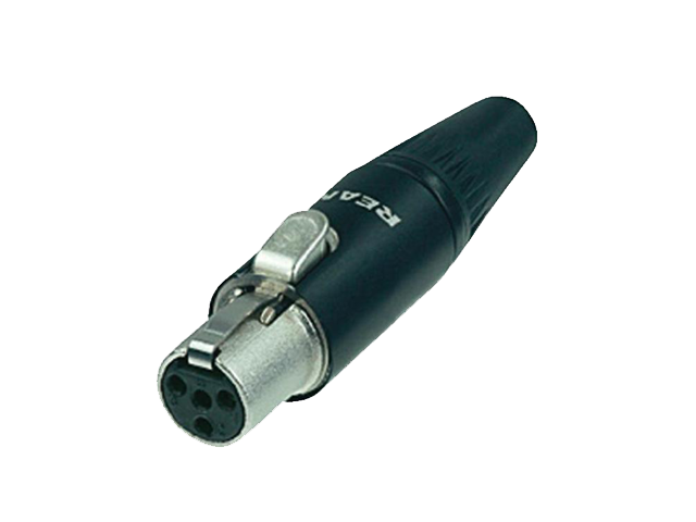 4 pole tiny xlr female cable connector, black metal shell, gold plated contacts