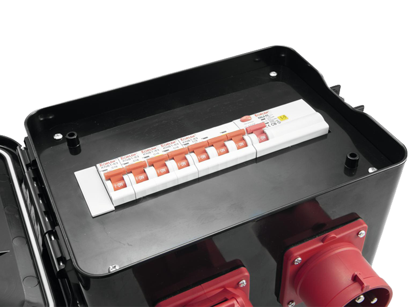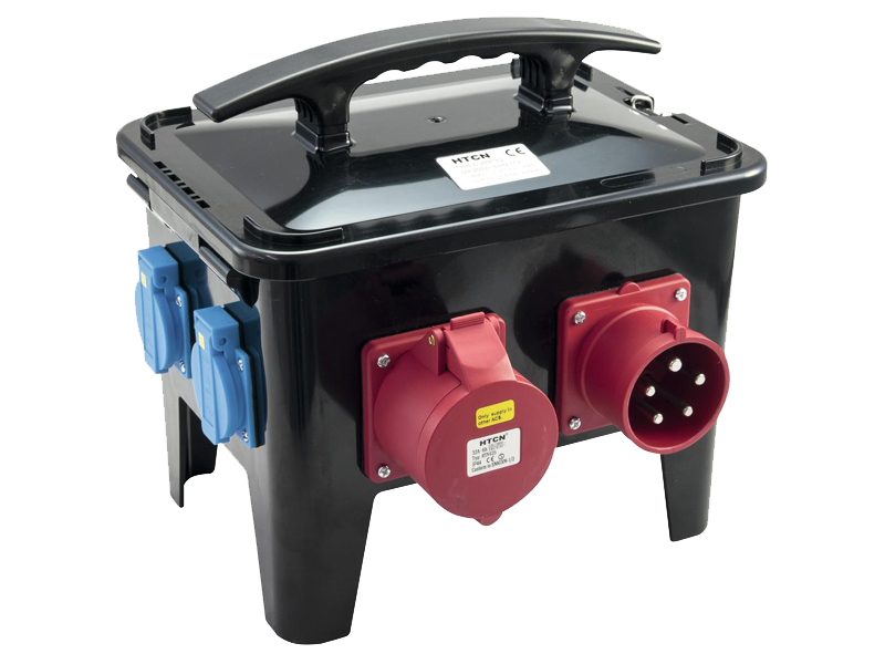 Outputs: 1 x CEE socket bypass 400 V/32 A, 5-pin, 2 x CEE socket 400 V/16 A, 3-pin, 4 x safety socket 230 V/16 A