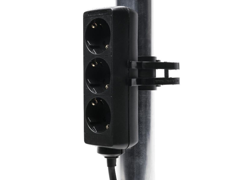 Truss clamp Truss tool for cable management Wiith additional holder for standard power distributors The clamp can again and again be snapped on the truss with one hand Additional truss protection when using a steel rope Optional rubber ring for cable stream lining