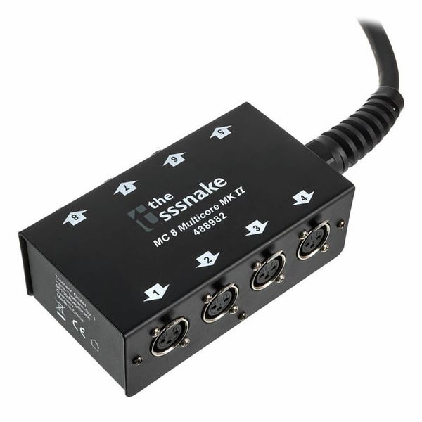 Metal Stagebox with 8x side-mounted XLR female sockets > XLR male connector ends