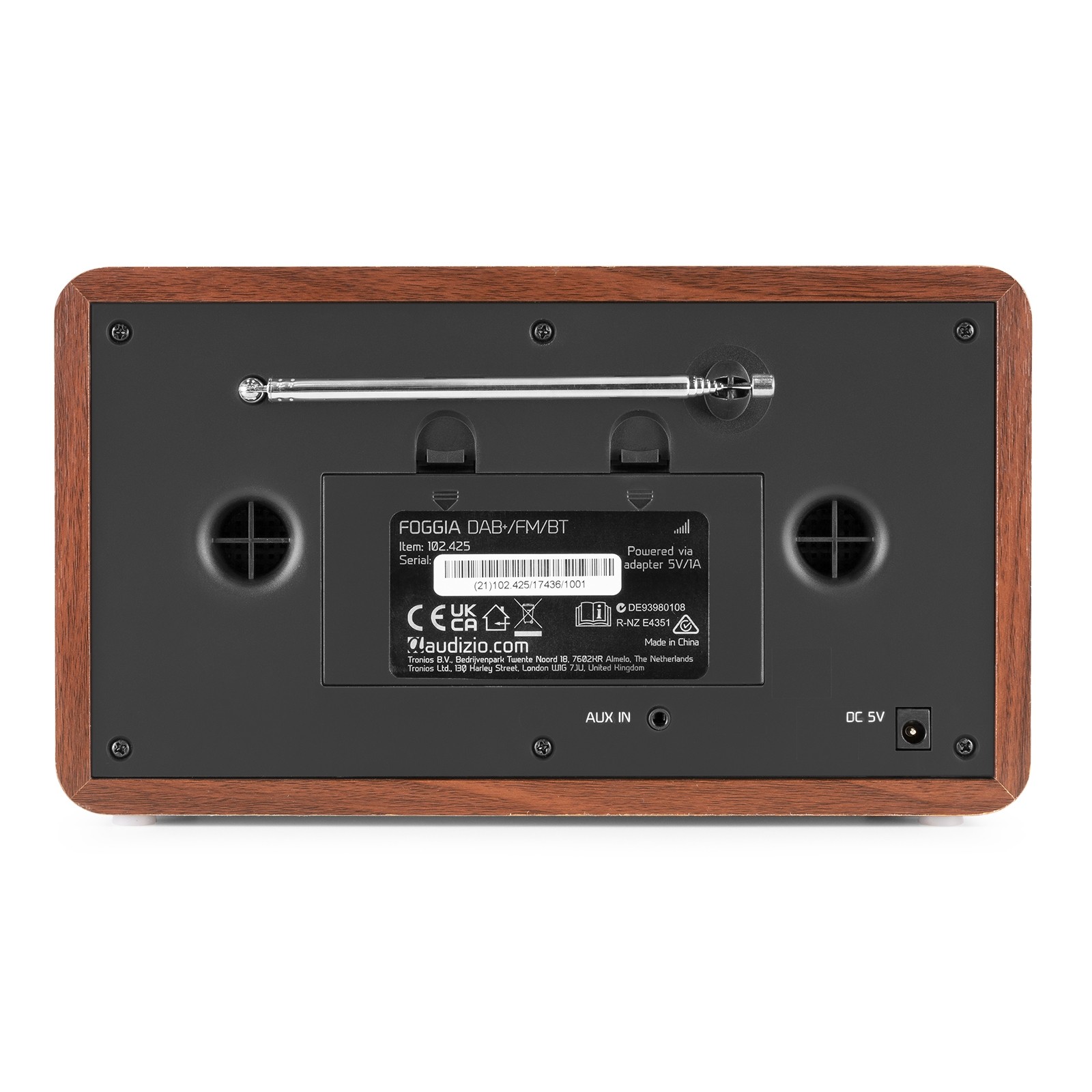 Playback options: BT 5.0 streaming, DAB+ tuner, FM radio