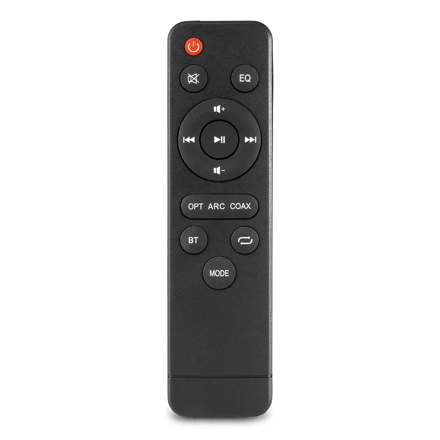 SB90 Sound Bar with wireless subwoofer delivers loud and clear sound plus bass you can feel, all with a hassle-free setup. The SB90 is 2.1 Channel system equipped with a 150W digital amplifier, 4 full range speakers and a compact 5.25” wireless subwoofer to deliver booming sound with crystal-clear audio quality. Equipped with Optical, Coaxial, HD-ARC, AUX in and USB input the sound bar system easily works with any devices, like flat TV, computer, Tablet and U Disk. With the BT 5.0 connection, you can stream music wirelessly from almost any BT device