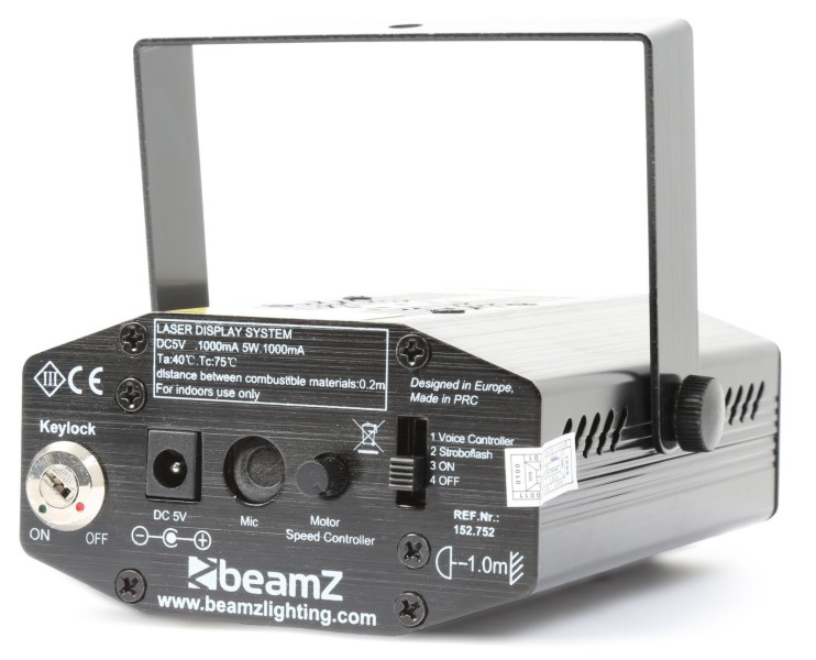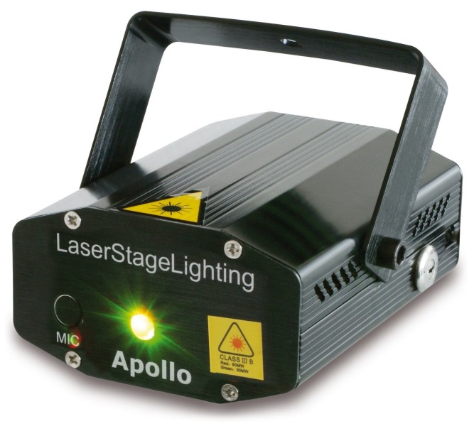Compact black mini laser of class 3B that creates an adjustable star sky effect in red and green. Ideal for bars, at home, etc. Red (120mW) and green (50mW) laser Pre programmed shows Sound activated with adjustable sensitivity Auto mode with adjustable speed