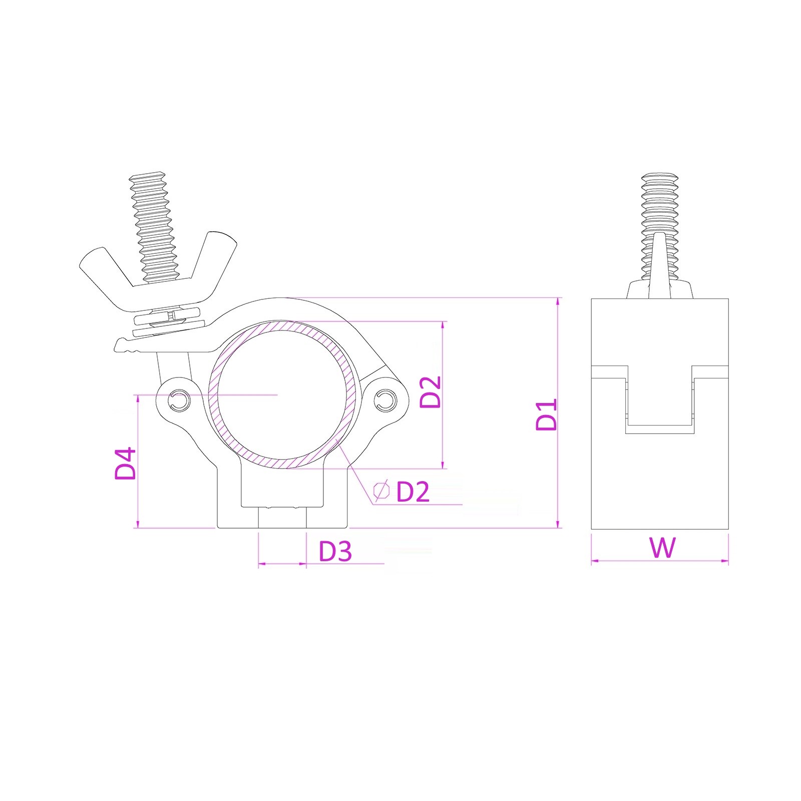 Heavy duty universal compact aluminium slimline half coupler for pipe and truss mounting fixtures. High-strength aluminum construction.