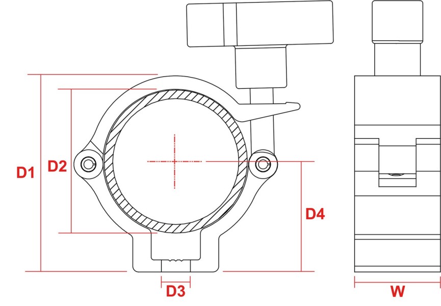 Heavy duty universal compact aluminium slimline half coupler for pipe and truss mounting fixtures. High-strength aluminum construction. Heavy duty aluminium clamp Butterfly and nut fixing