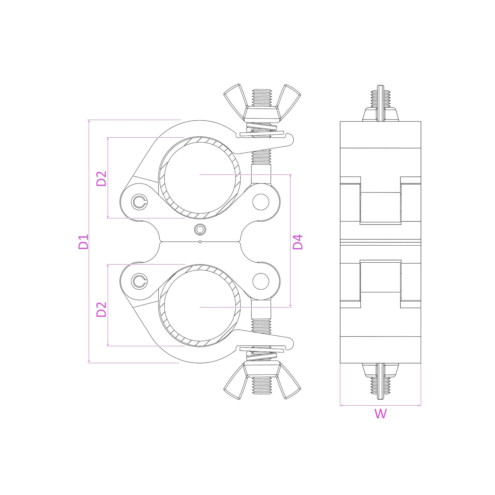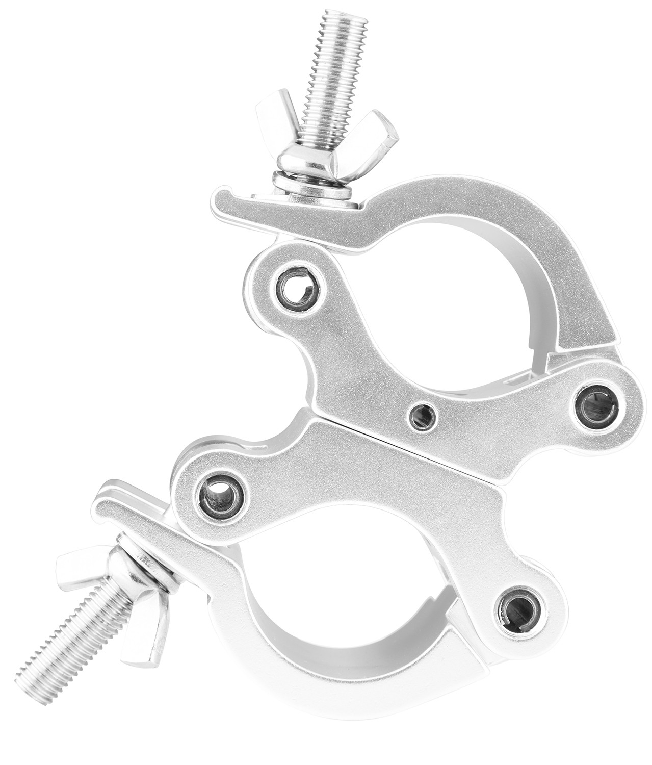 Heavy duty universal aluminium slimline swivel coupler for pipe and truss mounting fixtures. Swivel Coupler provides a firm fixing between adjacent bars whilst allowing 360 degrees of movement. High-strength aluminum construction.