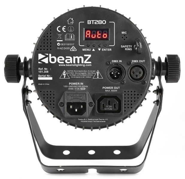 A high power parcan in ABS housing with 7x 10W RGBAW-UV (6-in-1) LEDs. Designed to be flat so it can fit in your trusses and equipped with IEC in/out for daisy chaining multiple units together. The BT280 has preset programs that can be used in stand-alone mode. In the DMX settings there is the choice of a 2,3 and 4-channel mode with preset colour macro’s or a 10-channel mode where you can control every single colour individually. The same can be done in stand-alone mode with the supplied remote control. The ABS housing and double stand make the BT280 also ideal for rental features, being lightweight and easy to setup.