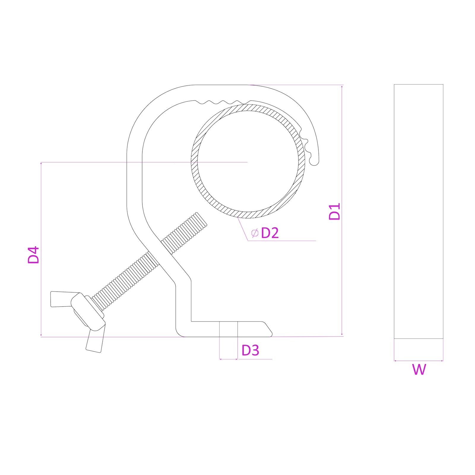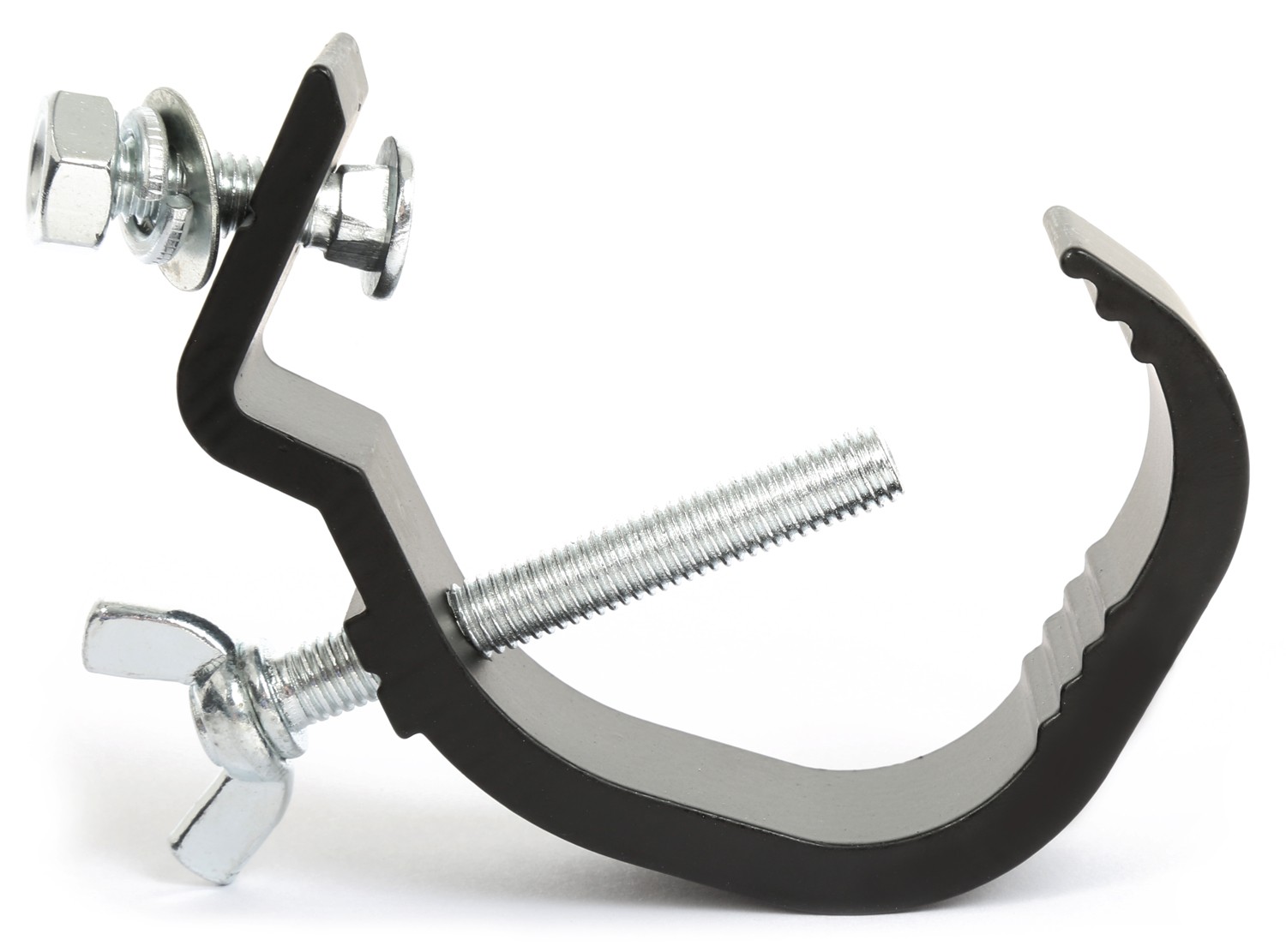 Special screw clamp for light effects. “G” shaped for universal applications. The “G” clamp can hold a maximum of 30 kg in weight, perfect for almost any light unit. Fits on poles of 28-64 mm diameter.