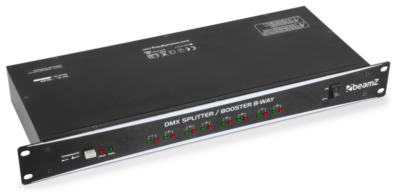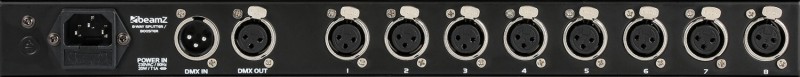 Tronios BeamZ DMX Splitter / Booster 8-way DMX splitter/booster is a 19″ single rack space, 8-way DMX distributor/booster with 3-pin XLR input and output jacks. This unit takes the incoming DMX signal and splits it to eight (8) separate outputs. This greatly decreases problems with ground loops and efficiently buffers and magnifies the DMX signal, making it more accurate and reliable. All outputs include 3-pin XLR sockets, which are electronically isolated from each other to ensure uninterrupted data. In addition, each output has dedicated drivers to boost the incoming signal.