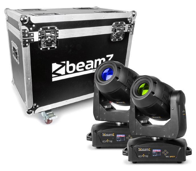 Tronios BeamZ IGNITE180S SPOT LED MOVING HEAD 2 PIECES IN FLIGHTCASE A set of 2 IGNITE180 moving heads in a flightcase.The flightcase is designed for the IGNITE180 and protects your valuable lights during transport. Solid flightcase supplied with 2 IGNITE180 moving heads