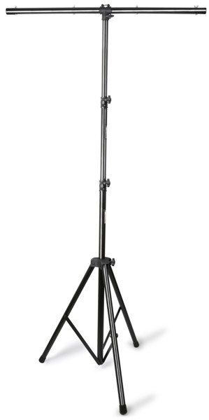 Stable lighting stand on a foldable tripod. Lightweight version T-bar with 4 hanging points Max height 3.5 m Ideal for PAR cans Load capacity: 25 kg
