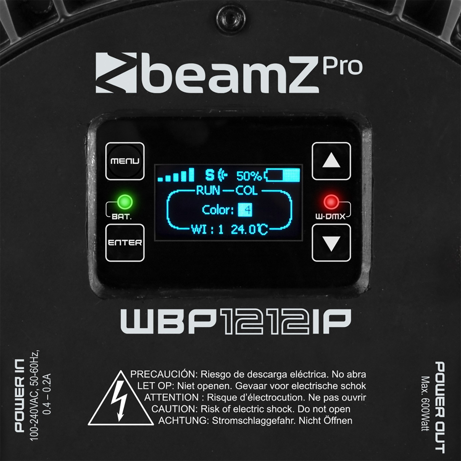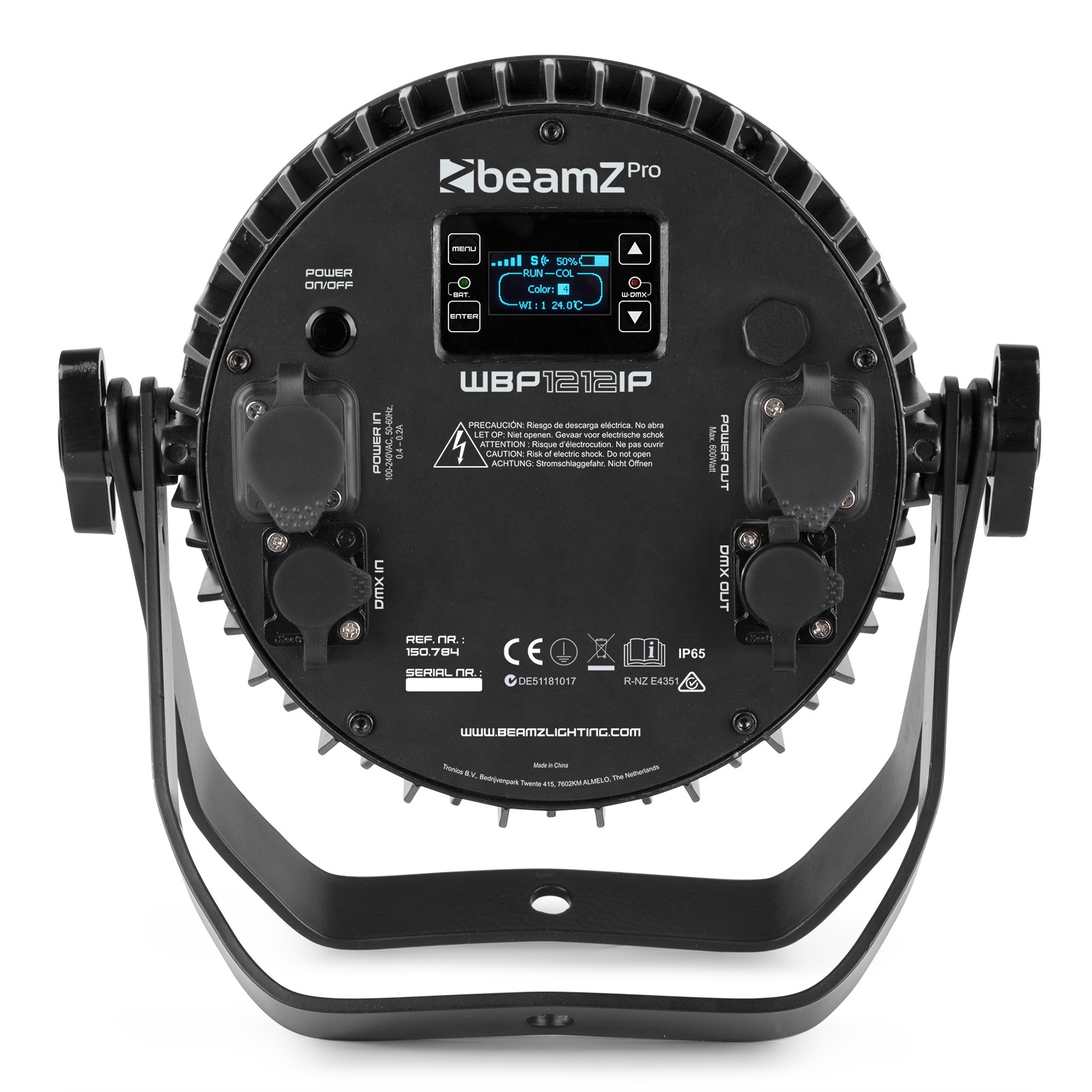This aluminium IP65 PAR with built-in battery is specifically designed for outside usage. With 12 high power 6-in-1 LEDs giving 6 colours it is ideal to use on any inside or outside venue. This WBP1212IP Par is specially designed to enrich the wash possibilities and to ensure a better convergence of light. Water resistant to IP65 specification with watertight internal gaskets and weatherproof power and data cable in/out connections. No fan – heat is dissipated via the aluminium housing. Includes OLED display, wireless DMX and double yoke ensures the product can be mounted anywhere the user desires. Also comes with an Infrared remote control.