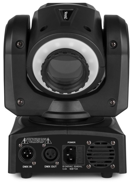 Tronios BEAMZ PROFESSIONAL Panther 35 Led Spot Moving Head with LED Ring Panther 35 Spot is a powerful 2-in one lightweight and compact moving head packed with professional features that lighting designers, DJs, or any entertainer can access via on board control or a DMX controller. Featuring seven colours and seven gobos, this spot moving head will deliver a superb light show whether using sound activation, one of the 8 built-in programs or controlling via a DMX controller. The Panther 35 offers 9 or 11 channels of DMX control, a manual focus, 4-Button LED DMX menu, Electronic Dimming (0-100%) and Gobo Shake effect. The controllable 4 section halo ring produces a visual and mesmerising experience of colour changes