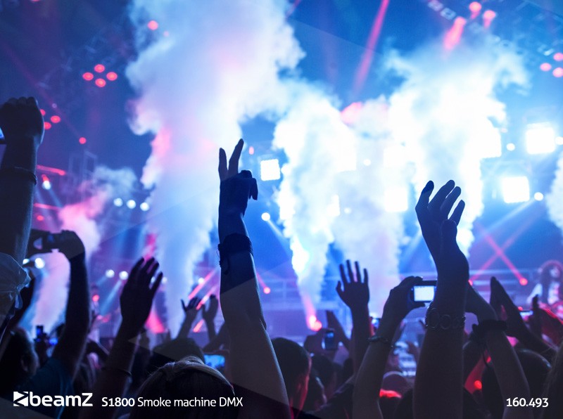 Professional 1800W smoke machine with large capacity for fabulous smoke emissions in various premises. Next to the standard horizontal you can also use this smoke machine vertically. This way you can use it in 2 different ways on the ground. The S1800 can be used with the supplied remote control, equipped with a timer control, or via DMX-512. Features a high quality heating element and a big built-in reservoir for smoke fluid.
