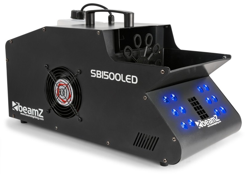 Tronios BeamZ SB1500LED SMOKE & BUBBLE MACHINE RGB LEDS SB1500LED is a combination of smoke, bubble and 3-in-1 LEDs built into one case. The fan of the SB1500 machine creates many bubbles that are filled with smoke every minute while also creating an up draft allowing the bubbles to rise high in the air. This system has 12x 3W LEDs in the powerful colours: Red, Green and Blue. The SB1500 is easy to load, easy to use, and easy to clean. At the end of the show, you’ll have no trouble cleaning up thanks to the liquid drainage valve system. The SB1500 has dual handles and built-in wheels making transport easy. Though capable of using most types of bubble fluid, the SB1500 is best paired with Beamz Bubble Liquid (160.575) and Beamz Smoke fluid (160.582) for the most satisfying and highest quality bubble entertainment.