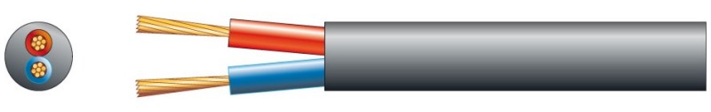 Tronios PD-Connex Speaker cable Round 2 x 2.5 Black Heavy duty 2 core speaker cable suitable for 100V line PA speaker installations. Stranded copper conductors with red and black inner insulation .