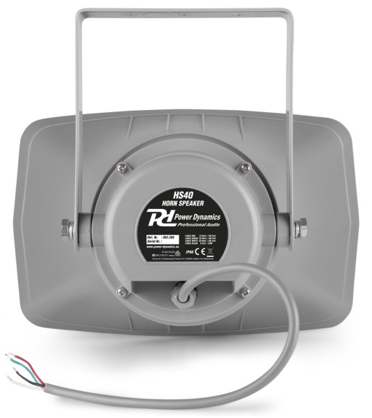 High power horn speaker ABS plastic housing Weatherproof IPX6 Supplied per piece Power Taps: 10, 20 and 40W Including mounting bracket