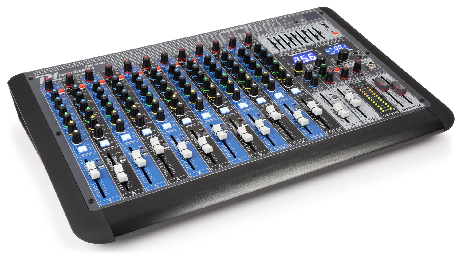 Power Dynamics PDM-1604 6-channel mixing console with 24-bit multi-FX processor is perfect for professional mixing of various music sources. This multi-channel mixer is equipped with a built-in BT receiver with smartphone holder and an MP3-compatible USB port. 16 channels for a variety of external audio accessories such as microphones and line equipment can be mixed to create a unique sound experience using a comprehensive effects section. The optimum sound control of all output signals is guaranteed at all times thanks to a 9-band equalizer. Even condenser and ribbon microphones work perfectly with a switchable + 48V phantom power. The PDM-S1604 is the ideal all-round mixer for studio applications of all kinds, and convinces both beginners and professionals alike with its diverse capabilities.