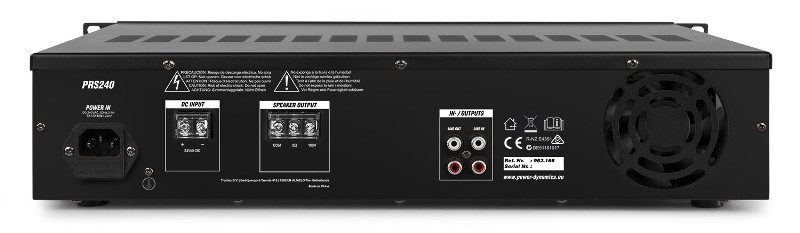 A boost amplifier for use with the Power Dynamics PRM-series amplifiers providing additional power if desired. Comes with unbalanced inputs as well as 8 ohms and 100V output options.