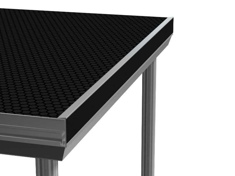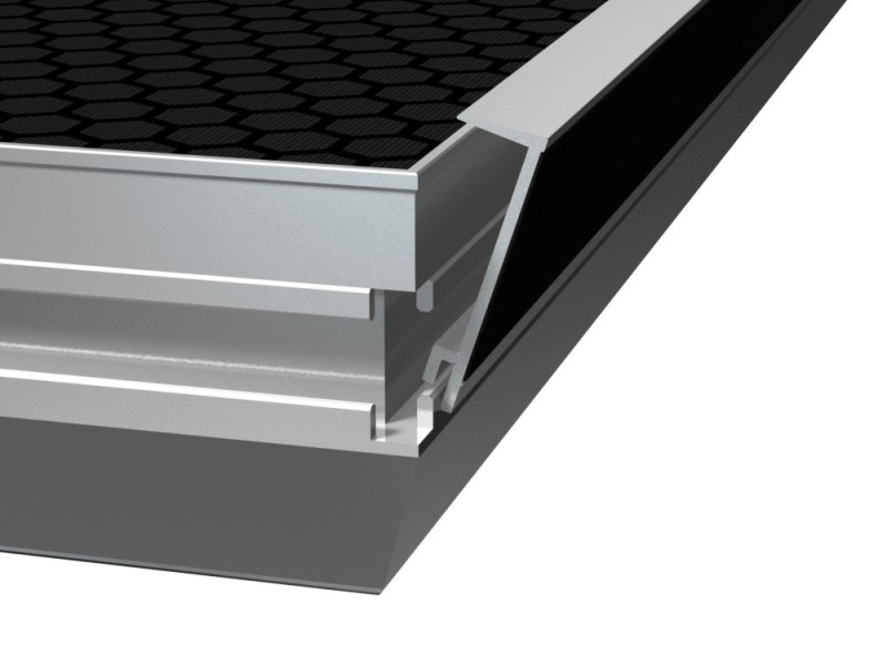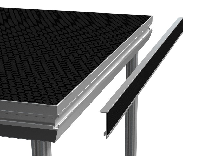 Aluminium skirting profile fixing strip for attaching stage skirts to stage decks. Prefinished with hook-and-loop fastener.