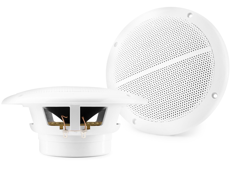 MSV65 Marine speakers are weatherproof and designed for use on deck, porch, balcony, bathroom and other applications. These 100W speakers are built with a waterproof polypropylene cone woofer and a Mylar dome tweeter in order to provide you with a rich, crystal clear sound experience. These speakers come with everything you need for installation including pre-mounted grills, speaker wire and mounting hardware