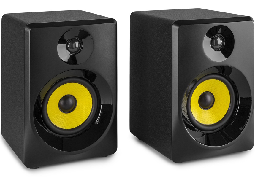 These SM Active Studio Monitors are professional quality studio monitors and also suitable for multimedia use. These speakers are designed to produce a flat frequency response for (home) studio recording, mixing, and mastering duties. Volume, bass and treble controls are located on the back panel for adjustments based on your personal preferences. The SM-series features analog amplifiers that are built into the left speaker, while the right speaker is passive so setup is simple. Just plug the left speaker into AC power and connect the included speaker wire from left to right. These Vonyx SM Active Studio Monitor Speakers creates a new performance level in affordable studio monitors