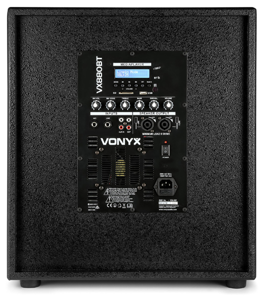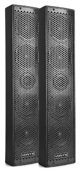 VX880BT set is easy to set-up and easy to transport. This set includes a 15″ subwoofer and two 8″ wooden column speakers. Both column speakers are equipped with 4x 2.5″ speaker and 1x 2.5″ tweeter’. The built-in BT receiver allows you to simply stream your music wirelessly from your smartphone or you can use the built-in MP3 player with USB and SD slots. This active speaker set is suitable for mobile DJs, karaoke shows, drive-in shows, presentations etc.