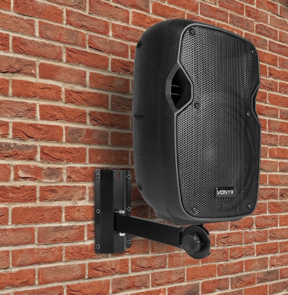 A set of 2 Wall Brackets for speakers fitted with a tophat. Adjustable in two positions. Vertical angle adjustable (30°) Horizontal adjustable (30° left and 30° right) For speakers with a standard 35mm top hat